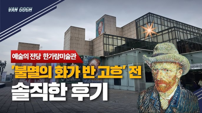 전시가 열리는 한가람미술관은 현대적인 건축물로, 반고흐의 대형 벽화가 외관을 장식하고 있어요.