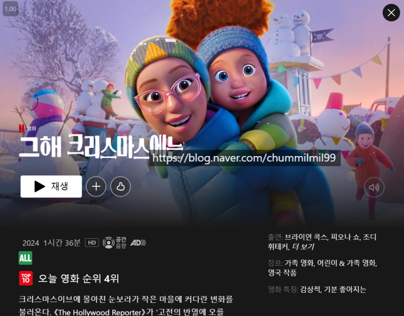[1] NAVER - 2024 연말에 볼만한 넷플릭스 크리스마스 영화 추천 (https://blog.naver.com/chummilmil99/223688709408)