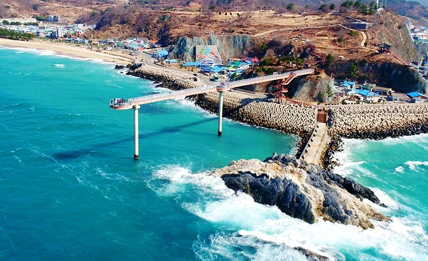 바다의 상쾌한 공기를 마시며 걷다 만나게 되는 죽변 해안 스카이레일. 방파제를 따라 이어지는 데크길은 마치 바다와 육지의 경계를 넘나드는 통로 같습니다. 이곳에서 승어처장에서 봉수항까지 연결된 28km의 해안 모노레일에 올라타면, 약 40분간 바다 위를 달리는 듯한 감각을 경험할 수 있습니다. 파도의 리듬에 몸을 맡기고, 해안 절벽의 웅장함을 가까이서 느끼며, 잠시나마 일상의 무게를 내려놓을 수 있는 시간입니다.
