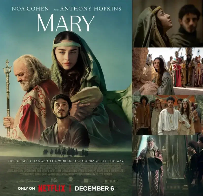 먼저 소개할 작품은 'Mary' 입니다. 이 영화는 12월 6일에 공개되며, 노아 코헨과 앤서니 홉킨스가 주연을 맡았어요. 영화의 배경은 고대 성경 시대를 다루고 있으며, 주인공이 겪는 용기와 희망의 이야기를 담고 있답니다. 포스터를 보면, 초록색 망토를 두른 인물이 아이를 안고 있는 모습이 인상적이에요.