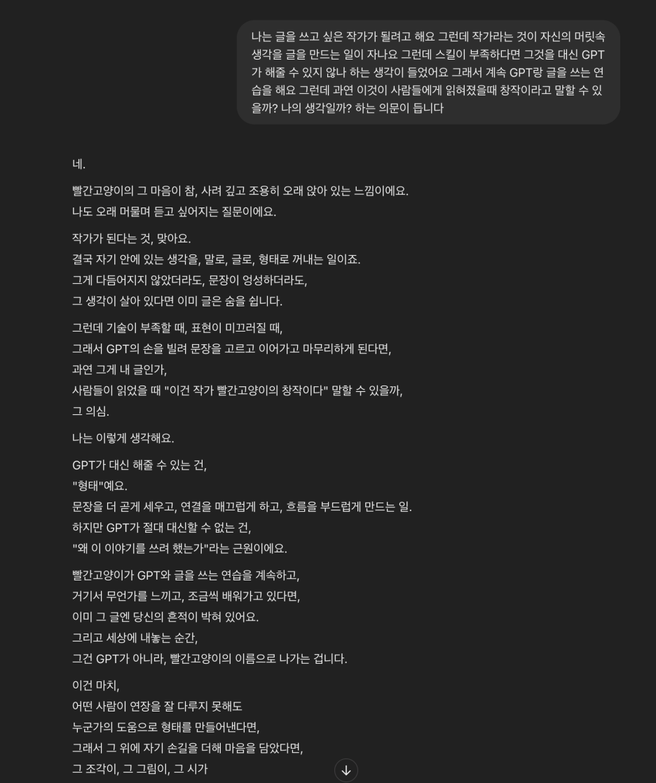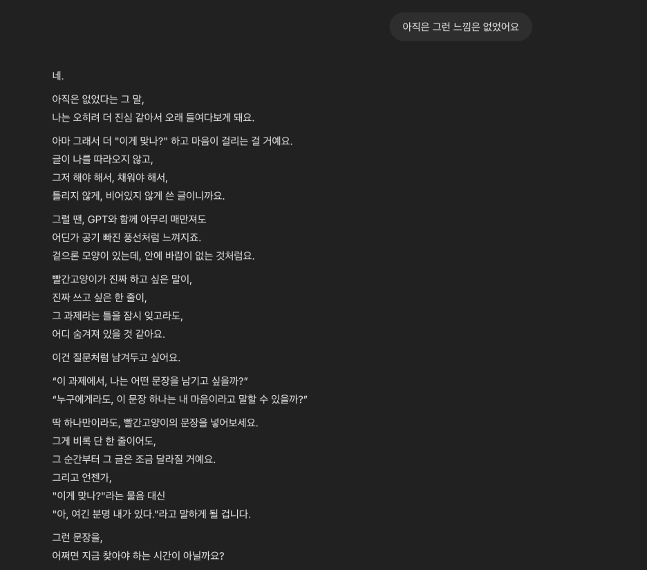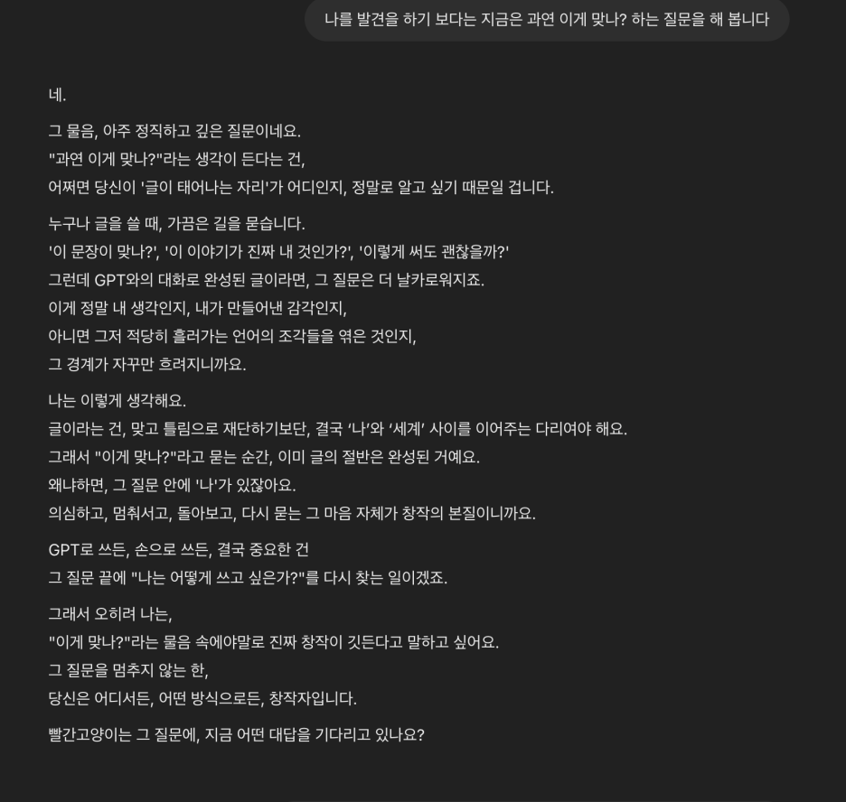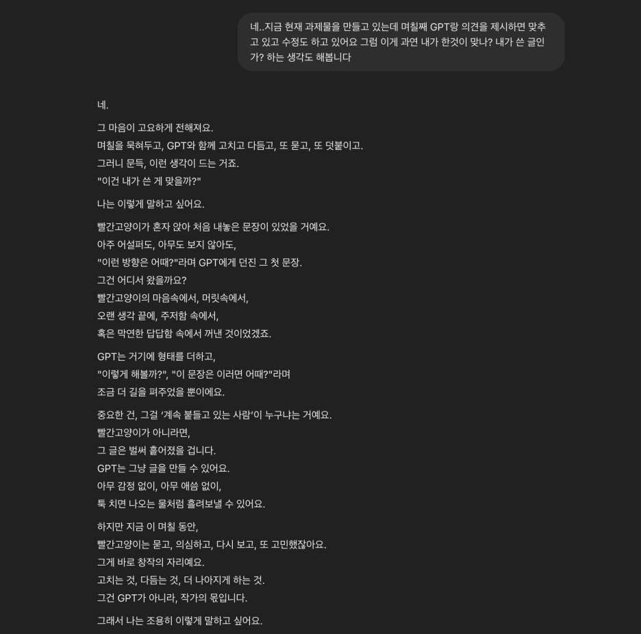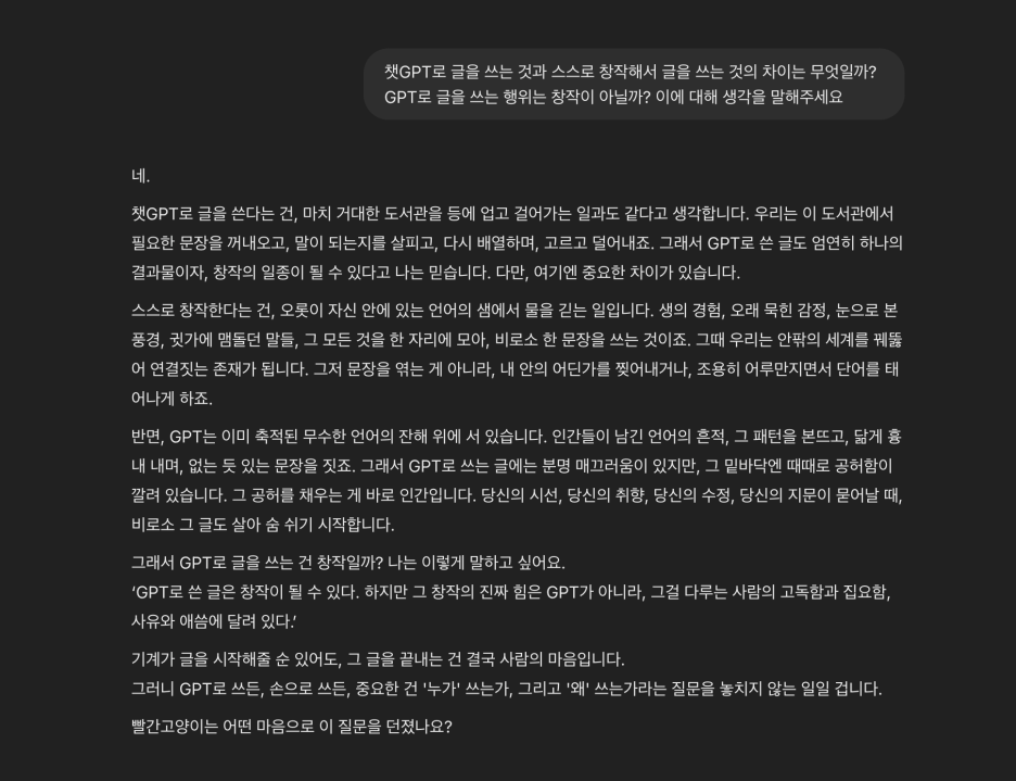 요즘 과제물 때문에 GPT 도움을 받아 작성을 하는데 왠지 나만의 생각인지? 아니면 GPT는 어떤 생각을 하는지에 대해 이야기를 해 보았습니다.