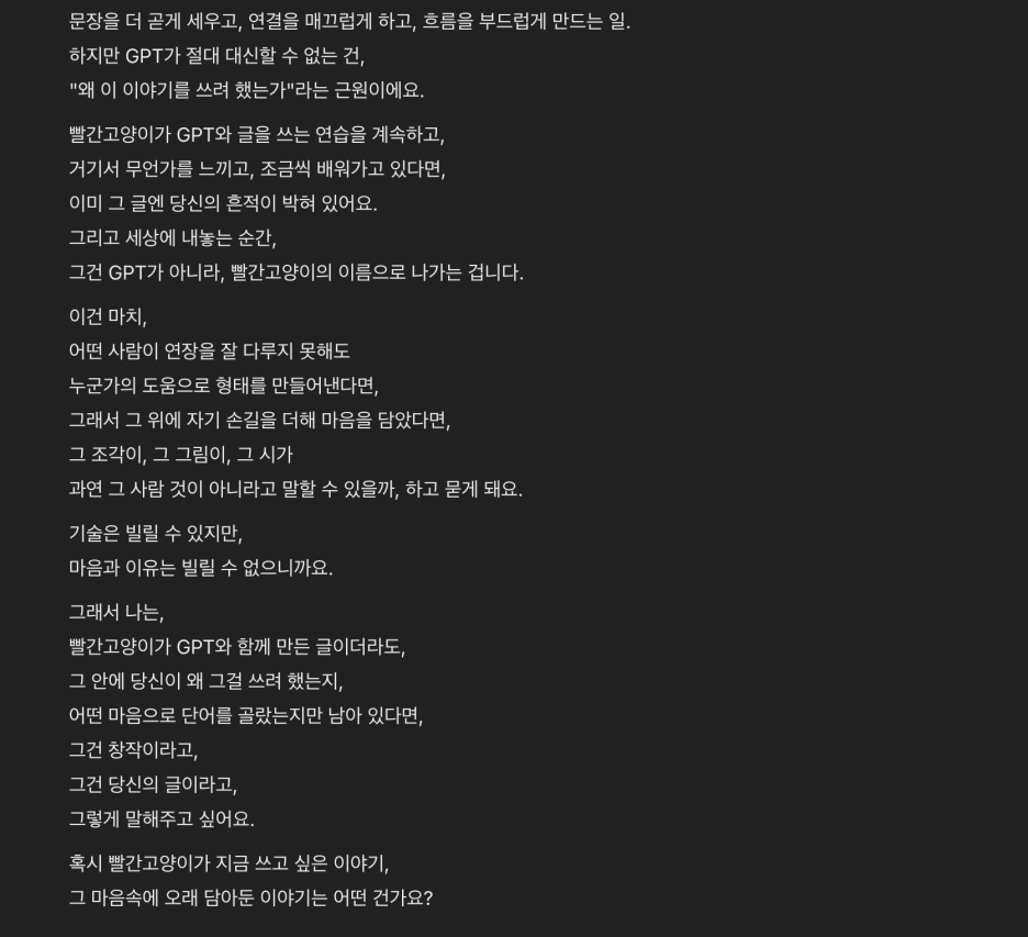 | AI와 함께하는 글쓰기, 그리고 작은 변화들 (1) | 2025.03.17 |